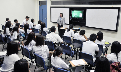 Air-conditioned classrooms are equipped with built-in flat monitors or LCD projectors, while discussion and lecture rooms have built-in LCD projectors and screens.
